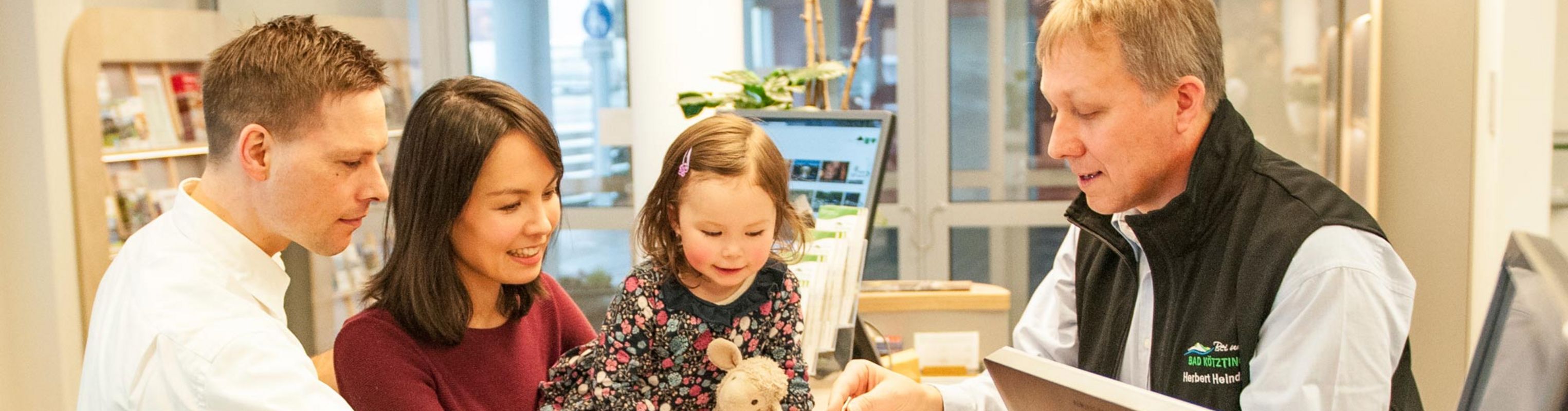 In den modernen Räumen des Kur- und Gästeservice im SINOCUR® Präventionszentrum erhalten alle Gäste stets freundlichen Rat und individuelle Empfehlungen rund um Fragen zum Aufenthalt in Bad Kötzting oder zur Teilnahme an den Gesundheitsangeboten der PräventionsRegion Bad Kötzting. Neben der persönlichen Beratung können sie umfassende Informationen über digitale Geräte (Touch-Points) aufrufen oder sich über ausgelegte Broschüren und Flyer über das Angebot informieren.